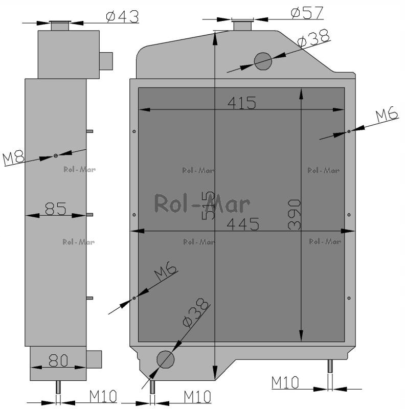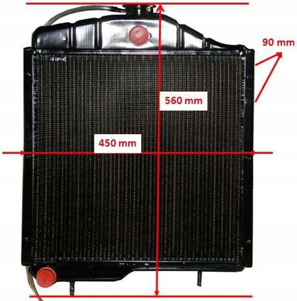Parametry techniczne: Wysokość: 560 mm (od śruby mocującej do korka) Szerokość: 450 mm Grubość: 90 mm Średnica przewodów: Ø 32 mm - wykonana w całości z miedzi (oprócz mocowań) - zwiększona zdolność odprowadzania ciepła - odporna na korozję
