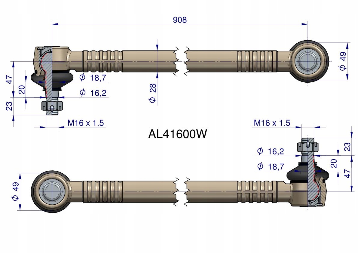Drążek kierowniczy 908mm AL41600 WARYŃSKI [AL41600W]