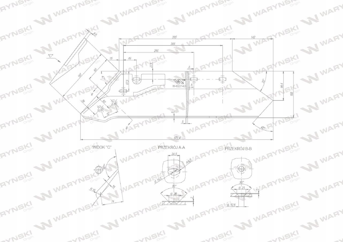ŚRUBY WSPÓŁPRACUJĄCE:4 x W-173121435Eurolemiesz prawy 16" 622142 zastosowanie Kuhn Losange WARYŃSKI Części robocze marki WARYŃSKI wykonane są z niezwykle wytrzymałej i odpornej na ścieranie stali borowej pochodzącej z europejskich hut. Każda, nawet najmniejsza dostawa, posiada dołączony certyfikat potwierdzający skład materiałowy. Stal borowa posiada właściwości szczególnie przydatne w zastosowaniach konstrukcyjnych wymagających dużej wytrzymałości. Połączenie wysokogatunkowej stali borowej, monitorowanego procesu obróbki cieplnej oraz skrupulatna kontrola jakości produktów WARYŃSKI to gwarancja wydłużonego okresu eksploatacji. Produkty WARYŃSKI to oszczędność kosztów związanych z powolnym ścieraniem i zużyciem części roboczych. W trosce o trwałość naszych produktów oraz zadowolenie klientów proces produkcji lemieszy WARYŃSKI nie zakłada operacji spawania. Wszystkie rodzaje otworów są wykonane w specjalny sposób minimalizujący naprężenia oraz zmniejszający ryzyko pęknięć.