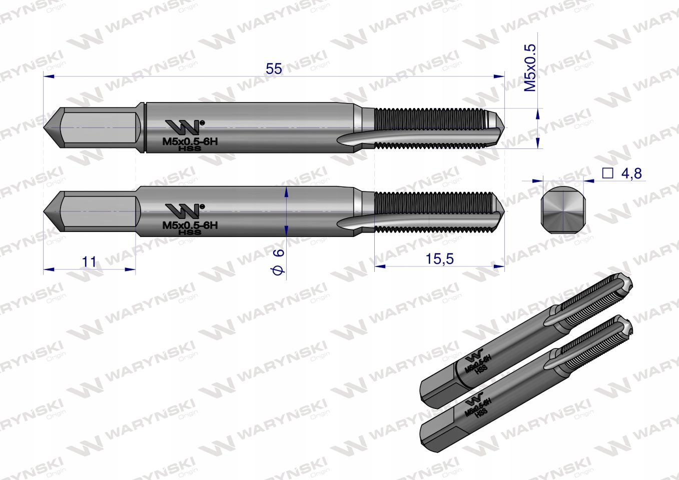 Gwintownki M5X0.5 ze stali szybkotnącej HSS komplet 2 szt (zgrubny, wykańczak) do gwintu metrycznego drobnozwojowego DIN2181 Waryński