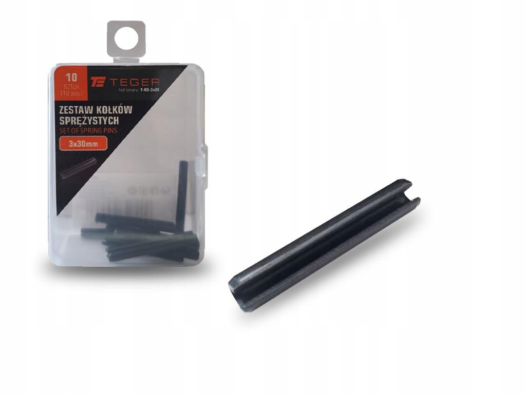 Kołki sprężyste z fazą / ścięciem obustronnym TEGER to elementy łączące stosowane do zabezpieczania połączeń mechanicznych w otworach przelotowych. Zapewniają trwałe i odporne na wibracje osadzenie. Obustronne ścięcie ułatwia montaż i demontaż, jednocześnie minimalizując ryzyko uszkodzenia otworu.