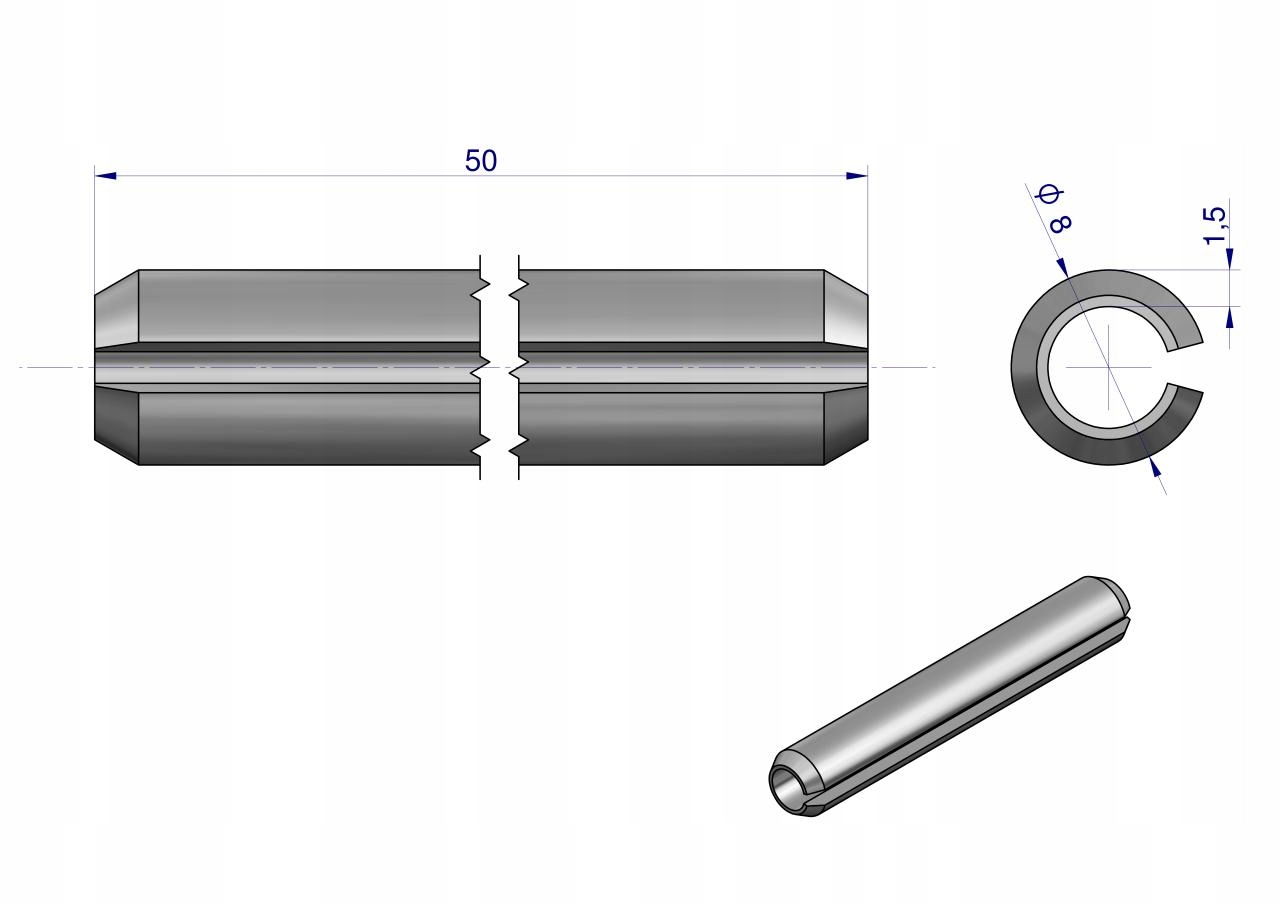 Zestaw kołków sprężystych 8x50 TEGER