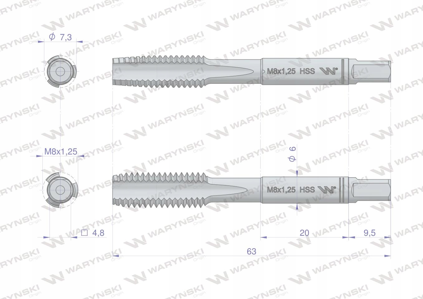 Komplet gwintowników przemysłowych M8 ze stali HSS wstępny wykańczak DIN 352/2 Waryński