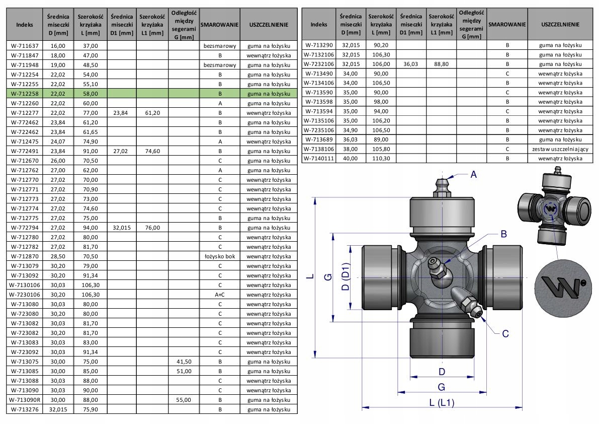 Szerokość krzyżaka: 58,00