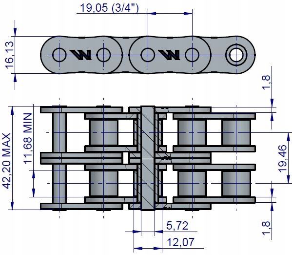 Łańcuch rolkowy, Galla dwurzędowy, napędowy, calowy.