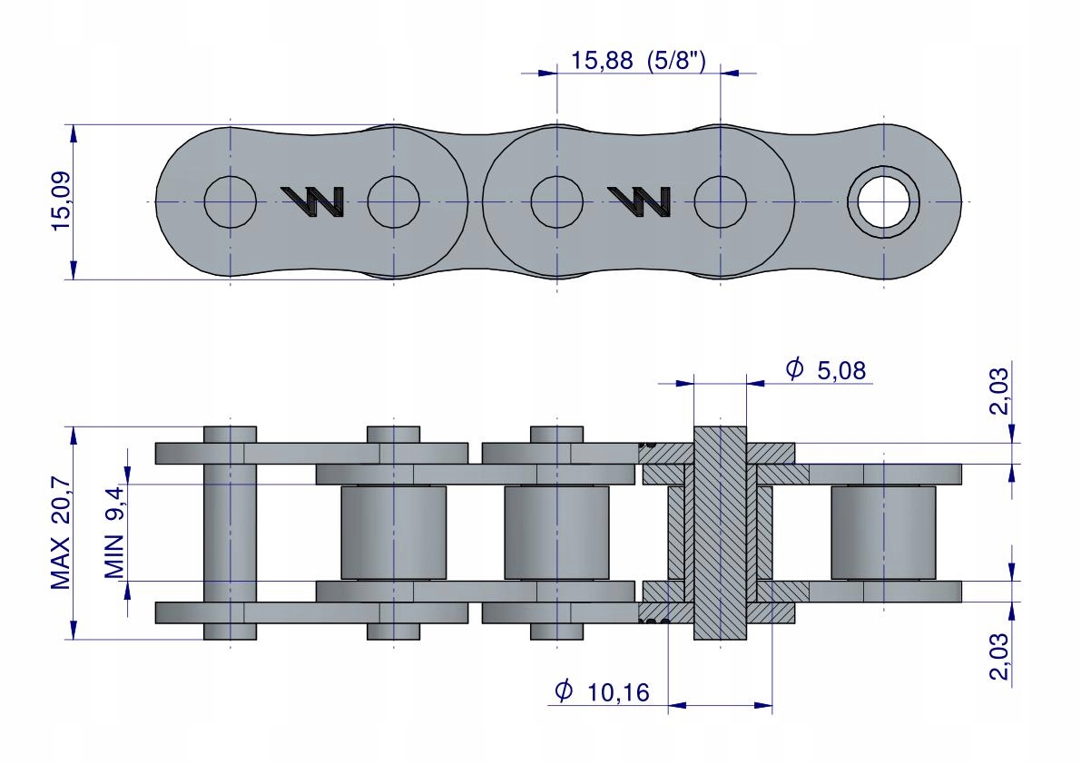 To zasługa pasowania sworzni z płytkami, z dokładnością do mikrona. Dzięki temu łańcuch działa sprawnie – ogniwa nie wybijają się oraz nie powstają luzy. Dokładne szlifowanie elementów walcowych łańcucha zabezpiecza go przed ugniataniem i ścieraniem się elementów walcowych.