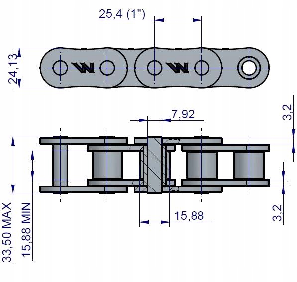 Łańcuch rolkowy, Galla jednorzędowy, napędowy, calowy.