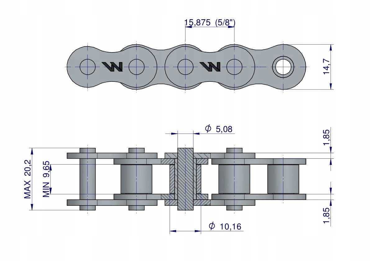 To zasługa pasowania sworzni z płytkami, z dokładnością do mikrona. Dzięki temu łańcuch działa sprawnie – ogniwa nie wybijają się oraz nie powstają luzy. Dokładne szlifowanie elementów walcowych łańcucha zabezpiecza go przed ugniataniem i ścieraniem się elementów walcowych.