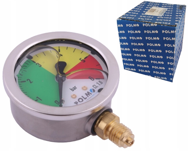 Manometr glicerynowy M63 0-6 bar gwint M12x1,5 dolne przyłącze, obudowa kwasoodporna, Opryskiwacz POLMO