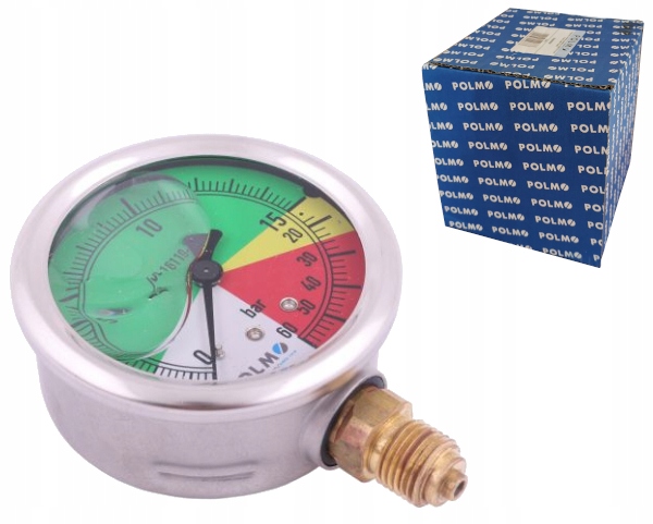 Manometr glicerynowy M63 0-15/60 bar gwint G1/4" dolne przyłącze, obudowa kwasoodporna, Opryskiwacz POLMO
