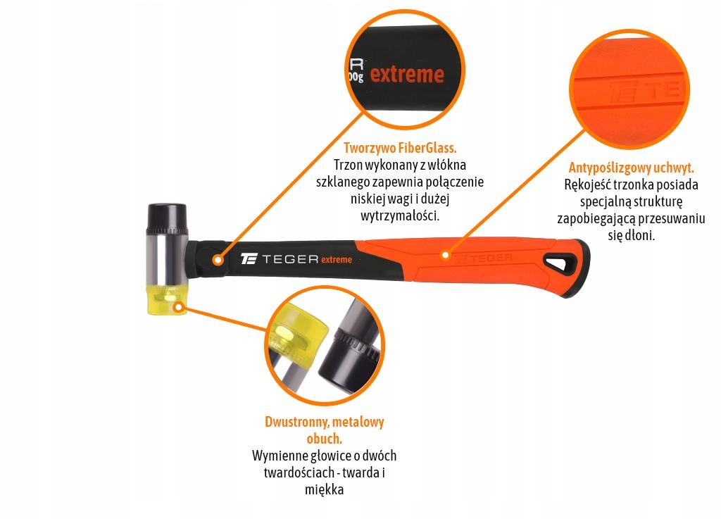 Młotek blacharski dwukierunkowy 30 mm / TEGER przeznaczony do pobijania elementów bez ryzyka ich uszkodzenia, głównie w pracach dekarskich, blacharskich i montażowych.