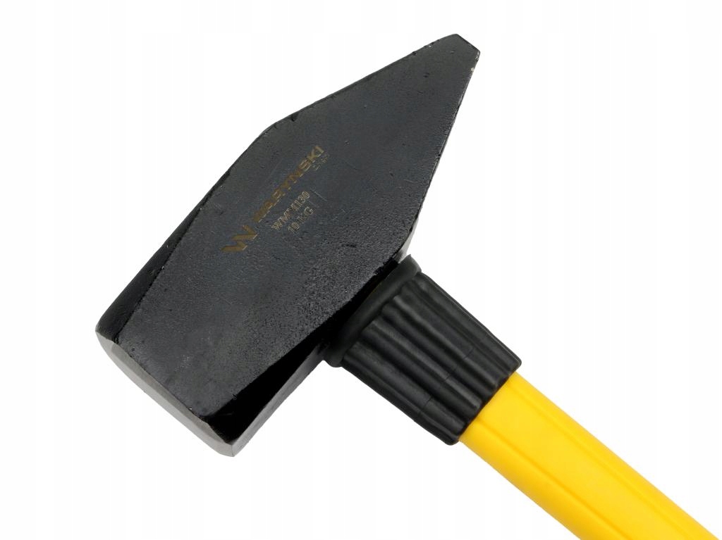 Młotek ślusarski 10 kg ciężki z wytrzymałym trzonkiem z włókien szklanych z ochronnym kołnierzem zapobiegającym uszkodzeniu obucha w standardzie GS przeznaczony do prac w mechanice, budowlanych i ciesielskich Waryński