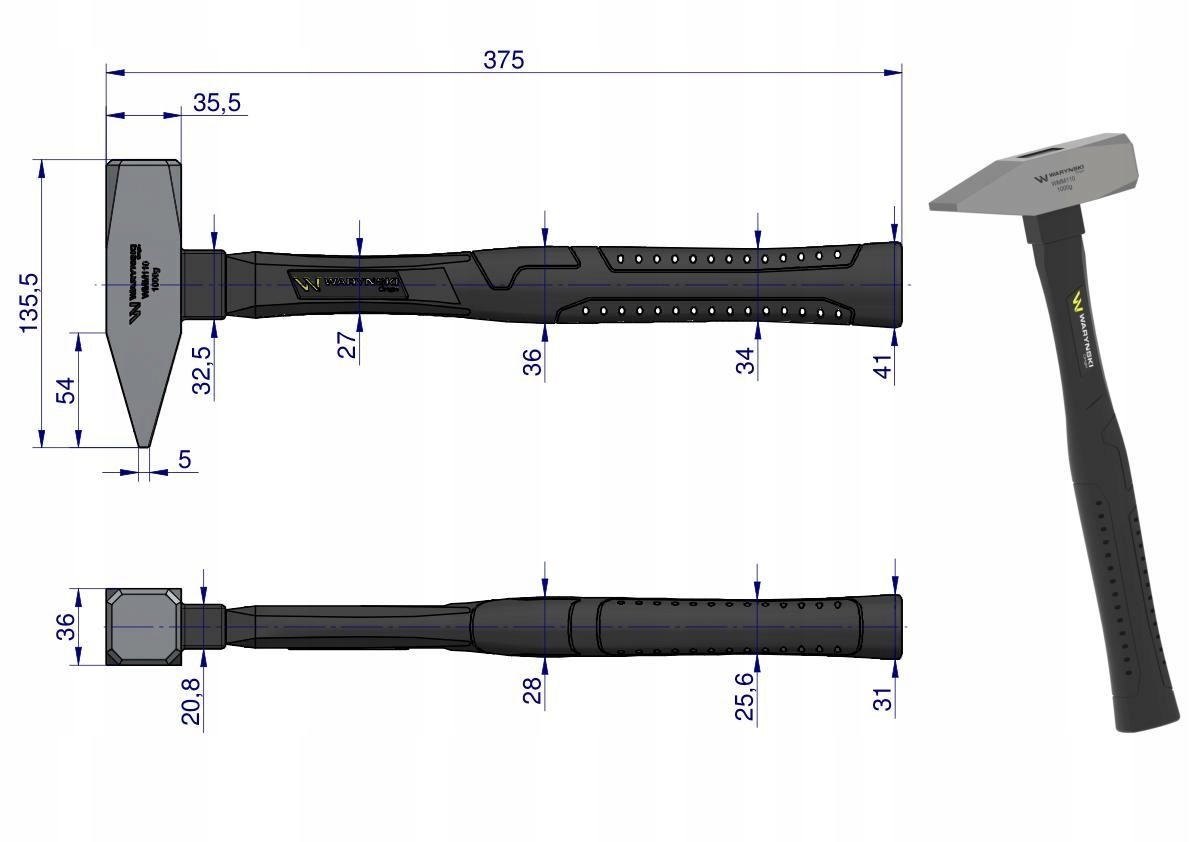 Strona główna » Narzędzia warsztatowe » Młotki, łomy » Młotek ślusarski 1000g WARYŃSKI