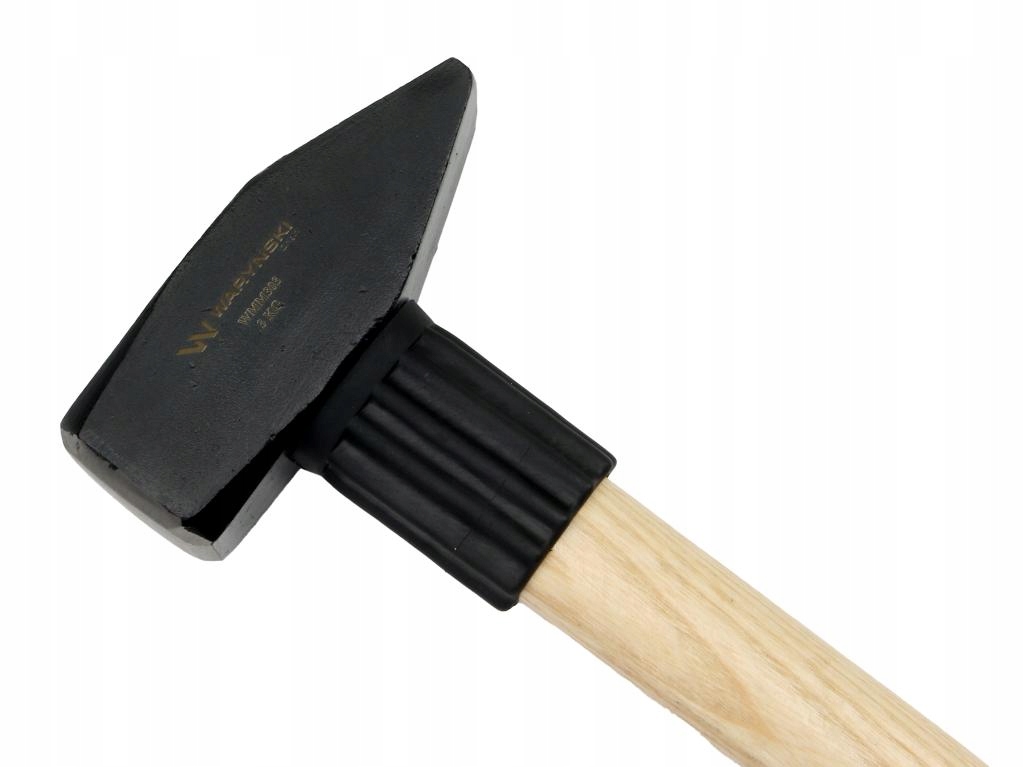 Młotek ślusarski 3 kg ciężki z jesionowym trzonkiem z ochronnym kołnierzem zapobiegającym uszkodzeniu obucha w standardzie GS przeznaczony do prac w mechanice, budowlanych i ciesielskich Waryński