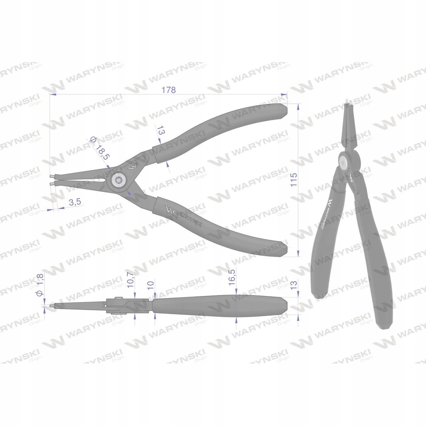 Specjalistyczne szczypce do pierścieni osadczych 178 mm zewnętrzne proste Waryński