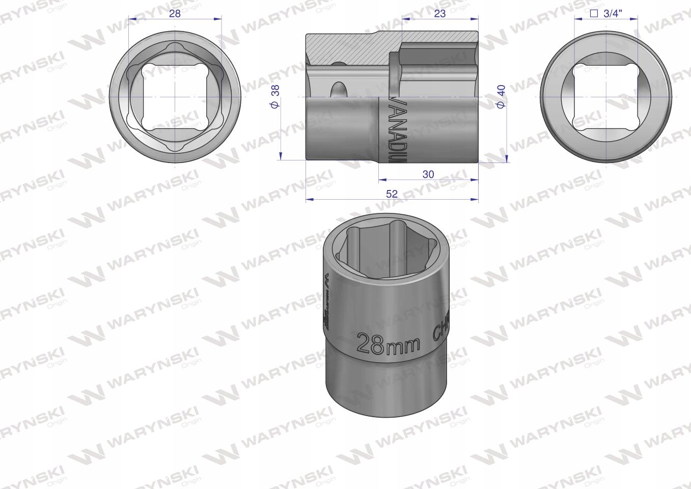 Nasadka sześciokątna 3/4 28 mm WARYŃSKI, WMN252Nasadka sześciokątna 3/4 28 mm WARYŃSKI