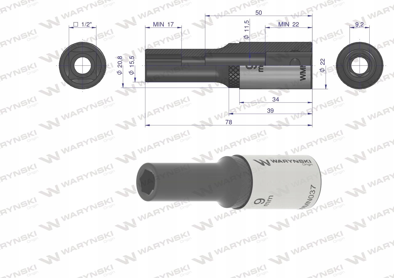 Nasadka sześciokątna długa 1/2 9 mm WARYŃSKI, WMN037Nasadka sześciokątna długa 1/2 9 mm WARYŃSKINasadka sześciokątna długa 1/2 9 mm WARYŃSKINasadka sześciokątna długa 1/2 9 mm WARYŃSKI