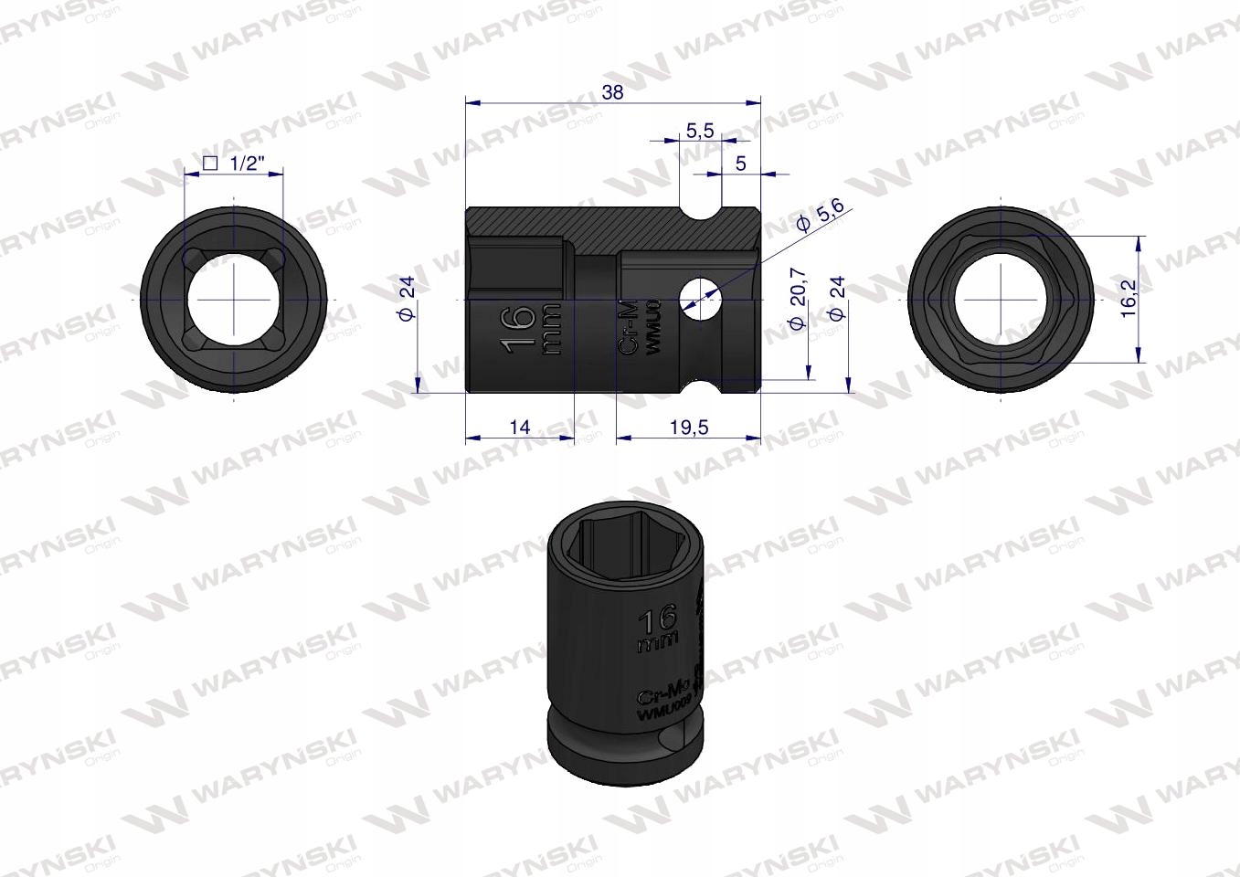Nasadka udarowa 6-kątna 1/2' 16mm WARYŃSKI, WMU009Nasadka udarowa 6-kątna 1/2' 16mm WARYŃSKINasadka udarowa 6-kątna 1/2' 16mm WARYŃSKINasadka udarowa 6-kątna 1/2' 16mm WARYŃSKI