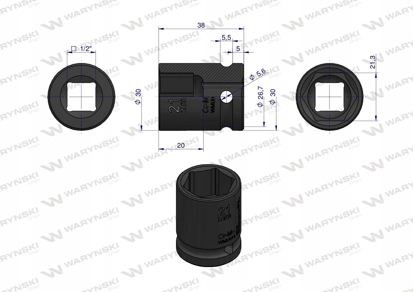 Nasadka udarowa 6-kątna 1/2' 21mm WARYŃSKI, WMU014Nasadka udarowa 6-kątna 1/2' 21mm WARYŃSKINasadka udarowa 6-kątna 1/2' 21mm WARYŃSKINasadka udarowa 6-kątna 1/2' 21mm WARYŃSKI