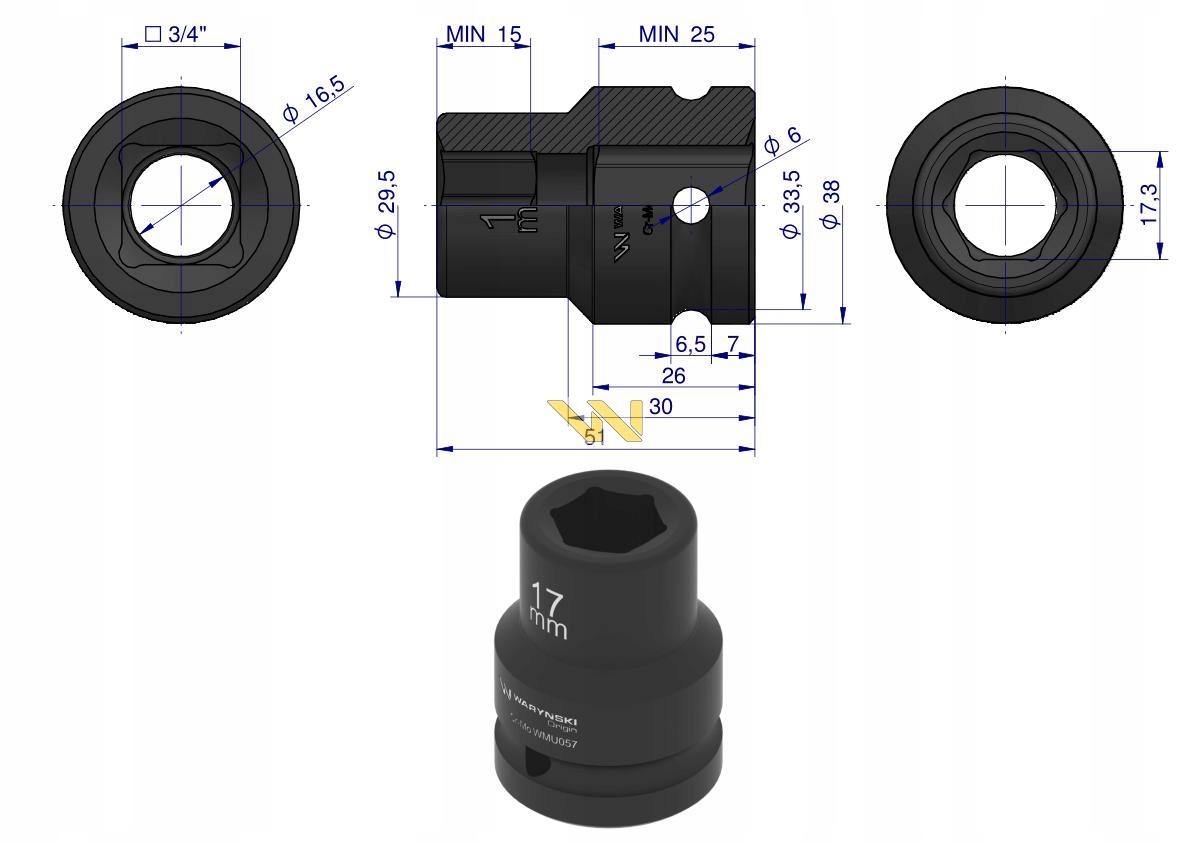 Nasadka udarowa 6-kątna 3/4' 17mm WARYŃSKI, WMU057