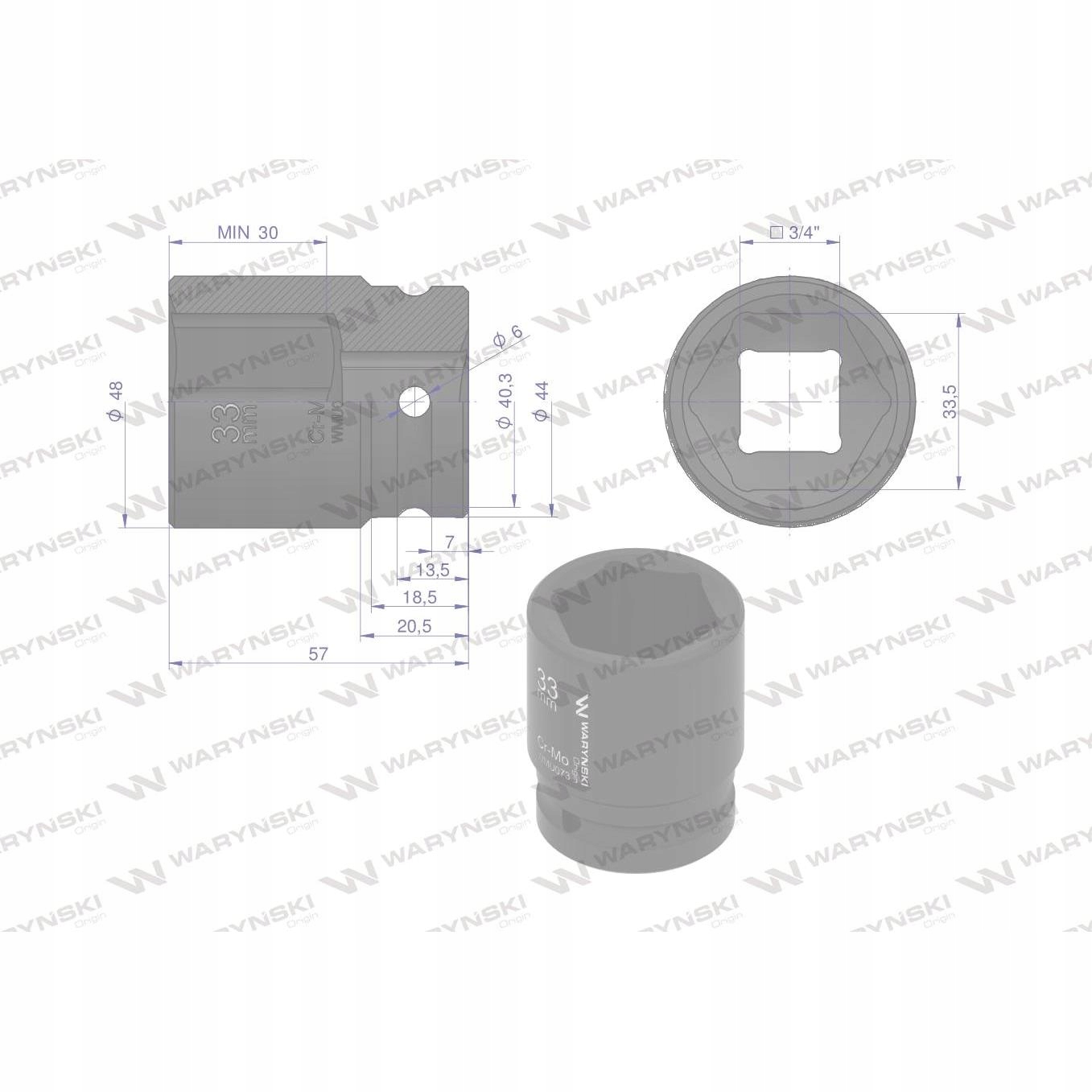 Nasadka udarowa 6-kątna 3/4' 33mm WARYŃSKI, WMU073Nasadka udarowa 6-kątna 3/4' 33mm WARYŃSKINasadka udarowa 6-kątna 3/4' 33mm WARYŃSKINasadka udarowa 6-kątna 3/4' 33mm WARYŃSKI