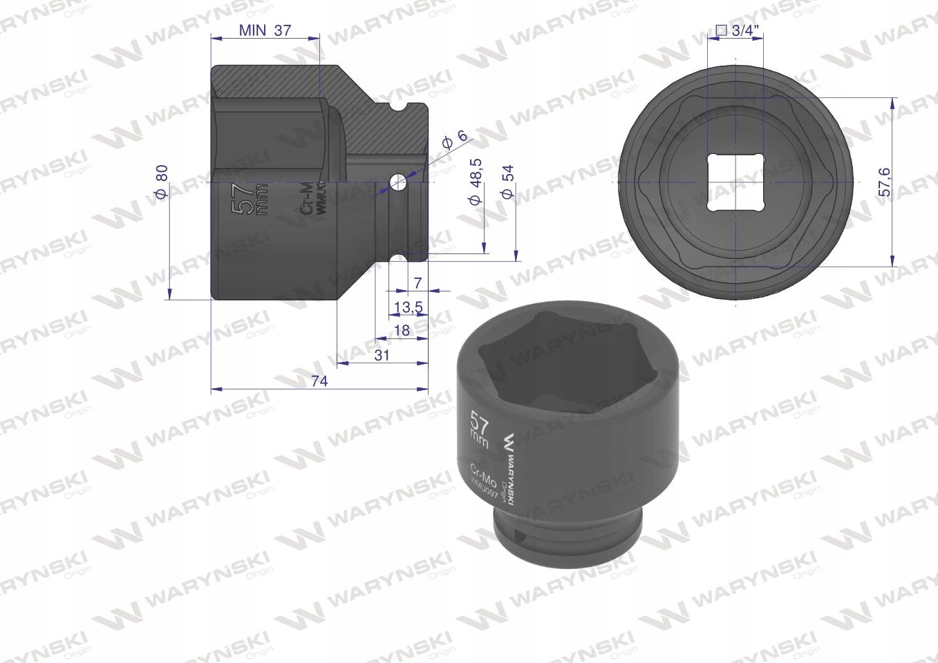 Nasadka udarowa 6-kątna 3/4' 57mm WARYŃSKI, WMU097Nasadka udarowa 6-kątna 3/4' 57mm WARYŃSKINasadka udarowa 6-kątna 3/4' 57mm WARYŃSKINasadka udarowa 6-kątna 3/4' 57mm WARYŃSKI