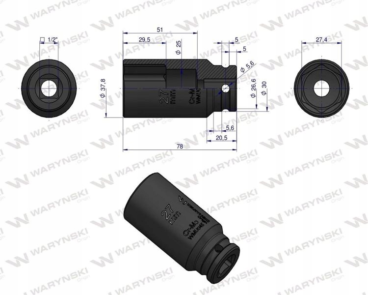 Nasadka udarowa 6-kątna długa 1/2' 27mm WARYŃSKI, WMU045Nasadka udarowa 6-kątna długa 1/2' 27mm WARYŃSKINasadka udarowa 6-kątna długa 1/2' 27mm WARYŃSKINasadka udarowa 6-kątna długa 1/2' 27mm WARYŃSKI