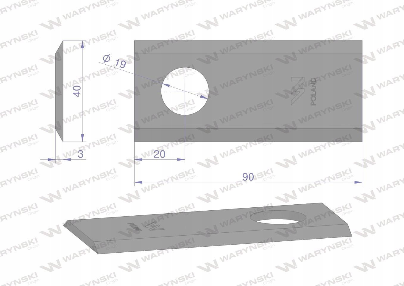 Nóż. nożyk kosiarka 90X40X3mm otwór 19 zastosowanie 06561543 MT 52 Deutz-Fahr WARYŃSKI ( sprzedawane po 25 ) [WKR90X40X3]