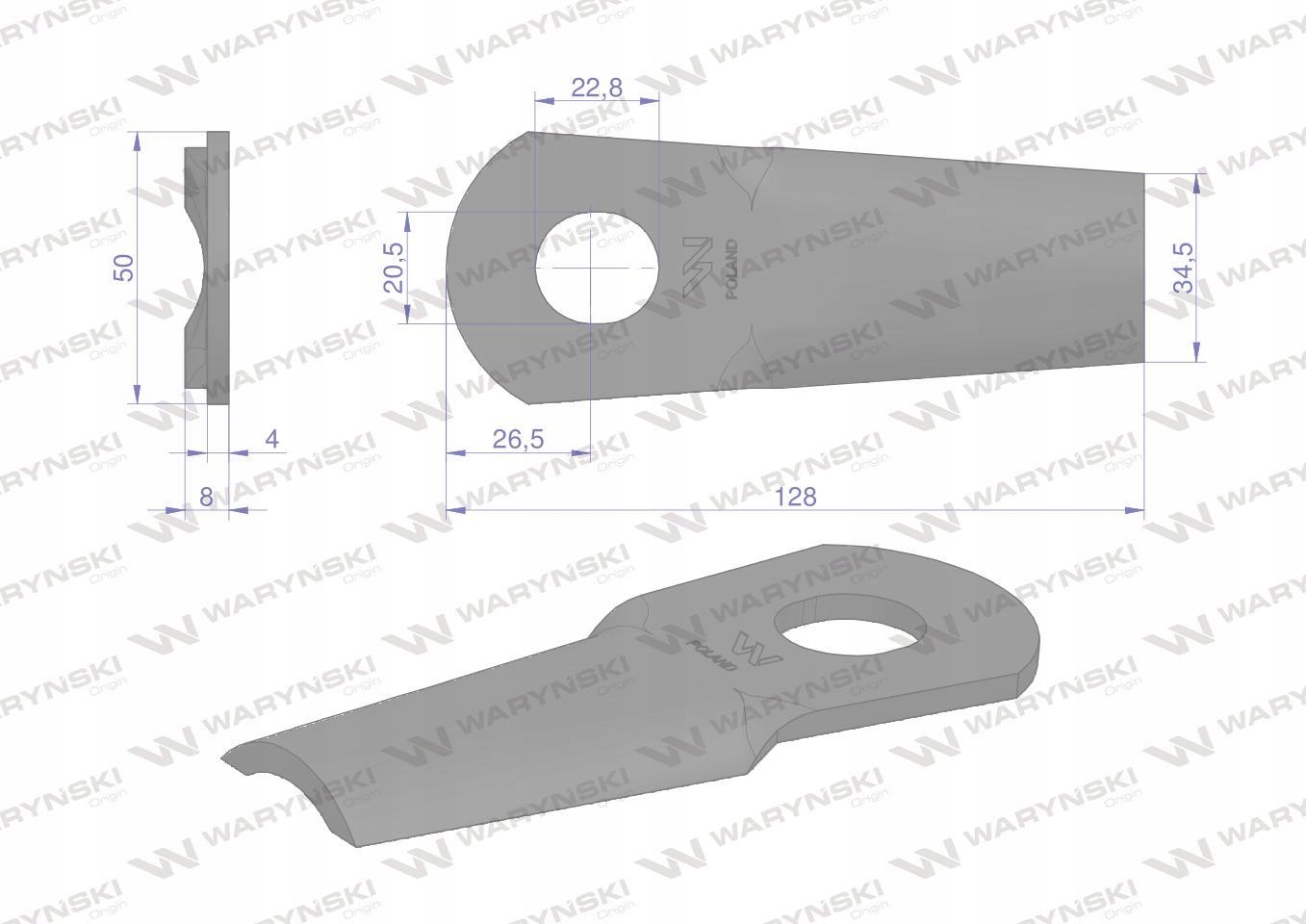 Strona główna » Części maszyn rolniczych » Kosiarka rotacyjna » Nożyki » Nóż nożyk kosiarka g. 128X50X4 Kvereland WARYŃSKI
