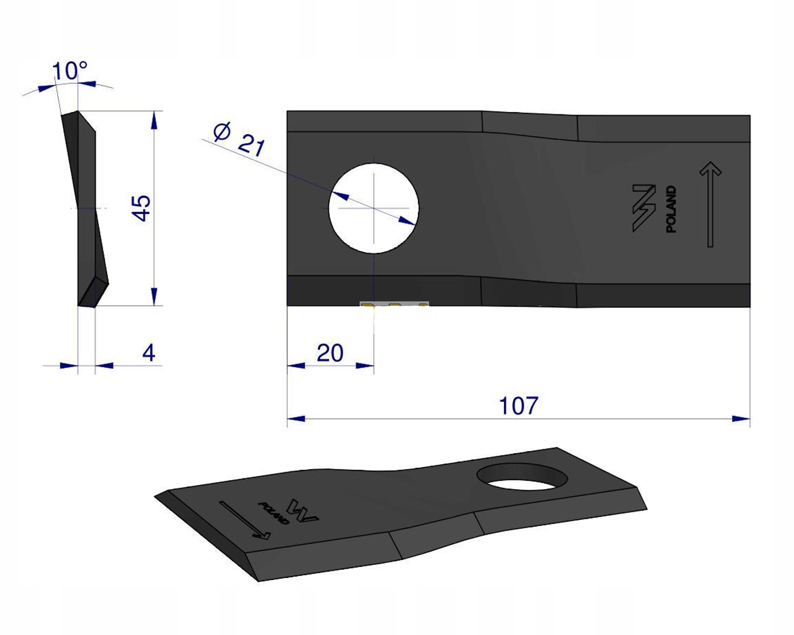 Strona główna » Części maszyn rolniczych » Kosiarka rotacyjna » Nożyki » Nóż nożyk kosiarka L 107x46x4mm otwór 21 WARYŃSKI
