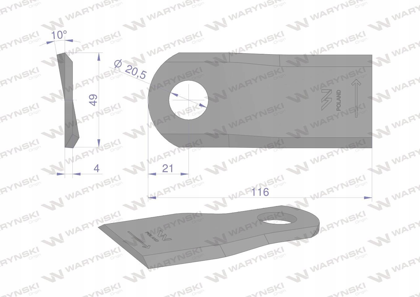 Strona główna » Części maszyn rolniczych » Kosiarka rotacyjna » Nożyki » Nóż nożyk kosiarka L 116x48x4 20.5 Kuhn WARYŃSKI