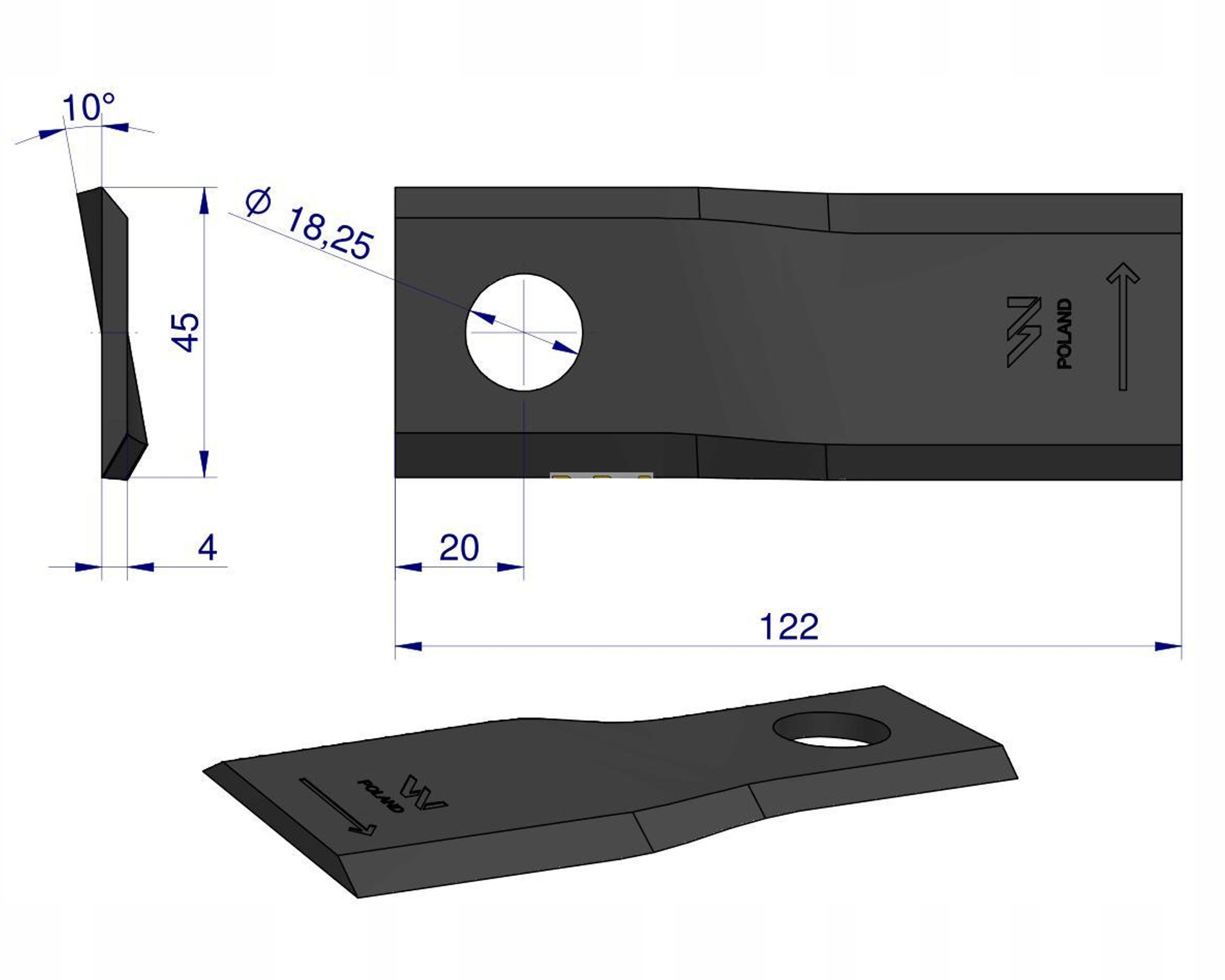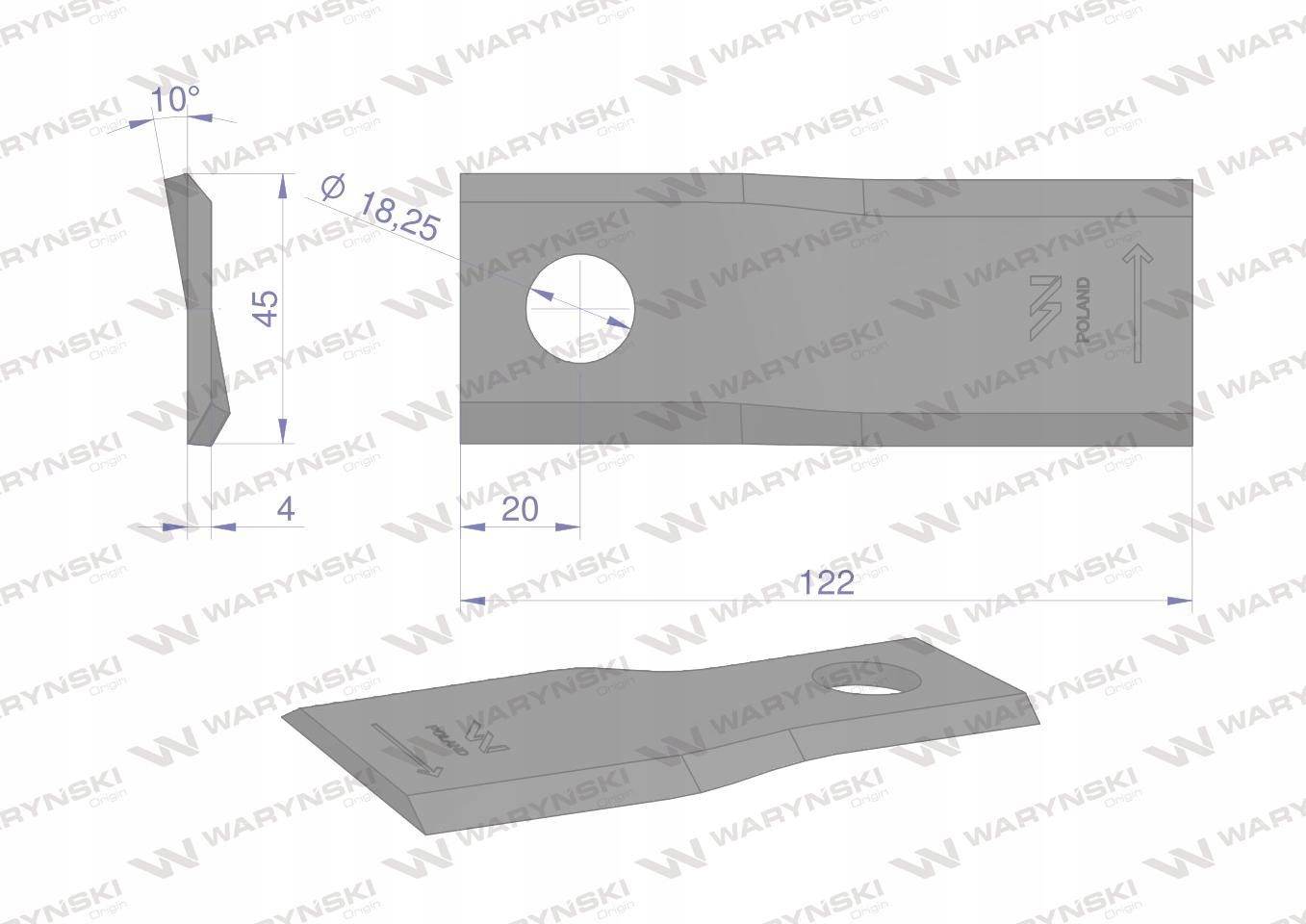 Strona główna » Części maszyn rolniczych » Kosiarka rotacyjna » Nożyki » Nóż nożyk kosiarka L 122x46x4 18.25 Kuhn WARYŃSKI