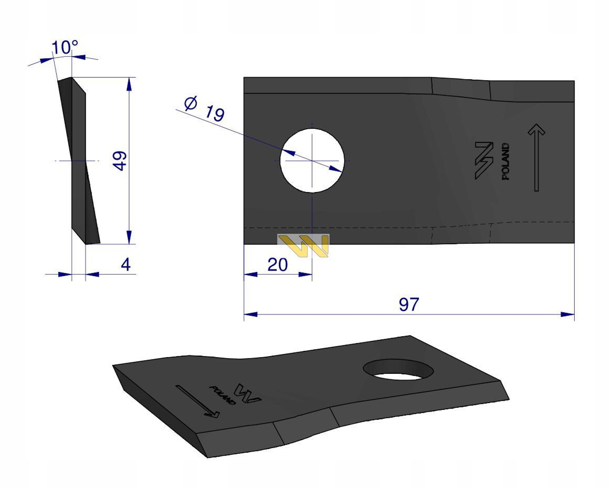 Strona główna » Części maszyn rolniczych » Kosiarka rotacyjna » Nożyki » Nóż nożyk kosiarka L 97x48x4 19 JF-Stoll WARYŃSKI