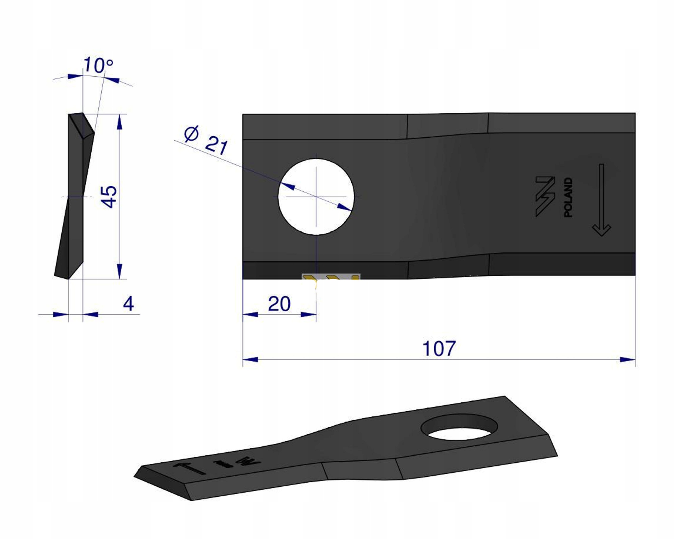 Strona główna » Części maszyn rolniczych » Kosiarka rotacyjna » Nożyki » Nóż nożyk kosiarka R 107x46x4 21 WARYŃSKI