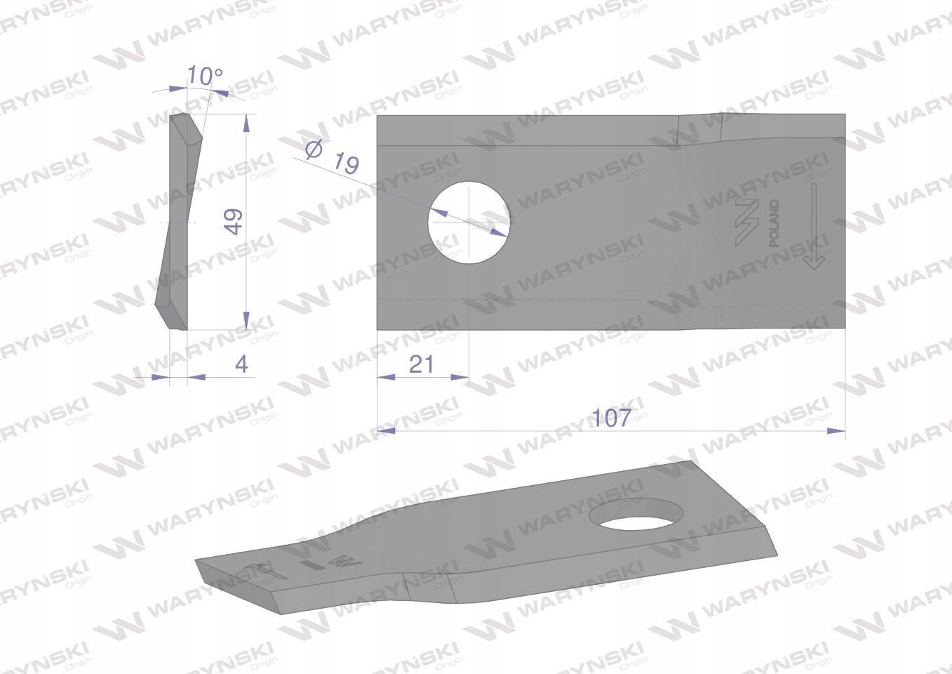 Nóż. nożyk kosiarka prawy 107x50x4mm otwór 19 zastosowanie 570684 Niemeyerl WARYŃSKI ( sprzedawane po 25 ) [WKR107X48X4P]