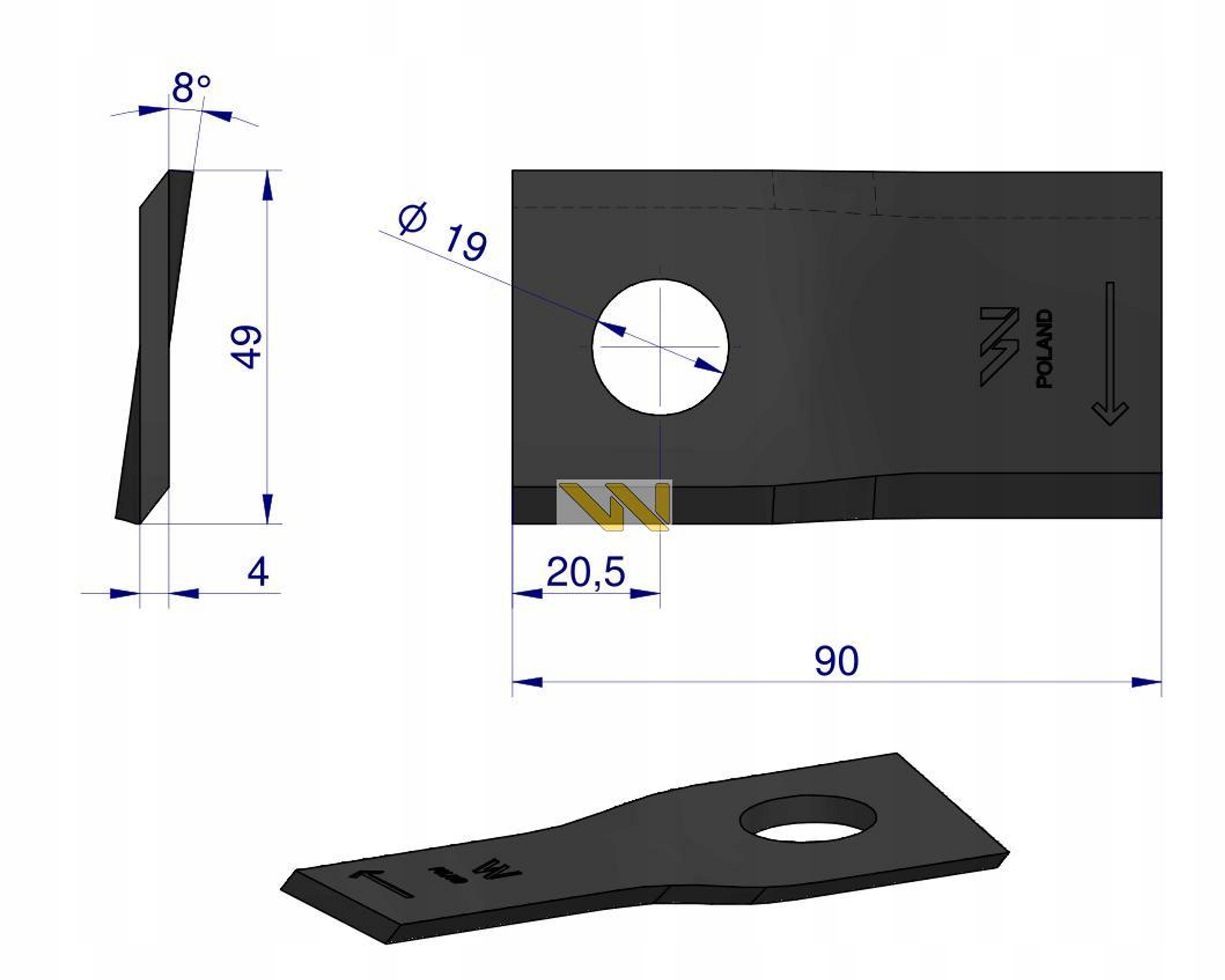 Strona główna » Części maszyn rolniczych » Kosiarka rotacyjna » Nożyki » Nóż nożyk kosiarka R 90x48x4 19 Krone WARYŃSKI