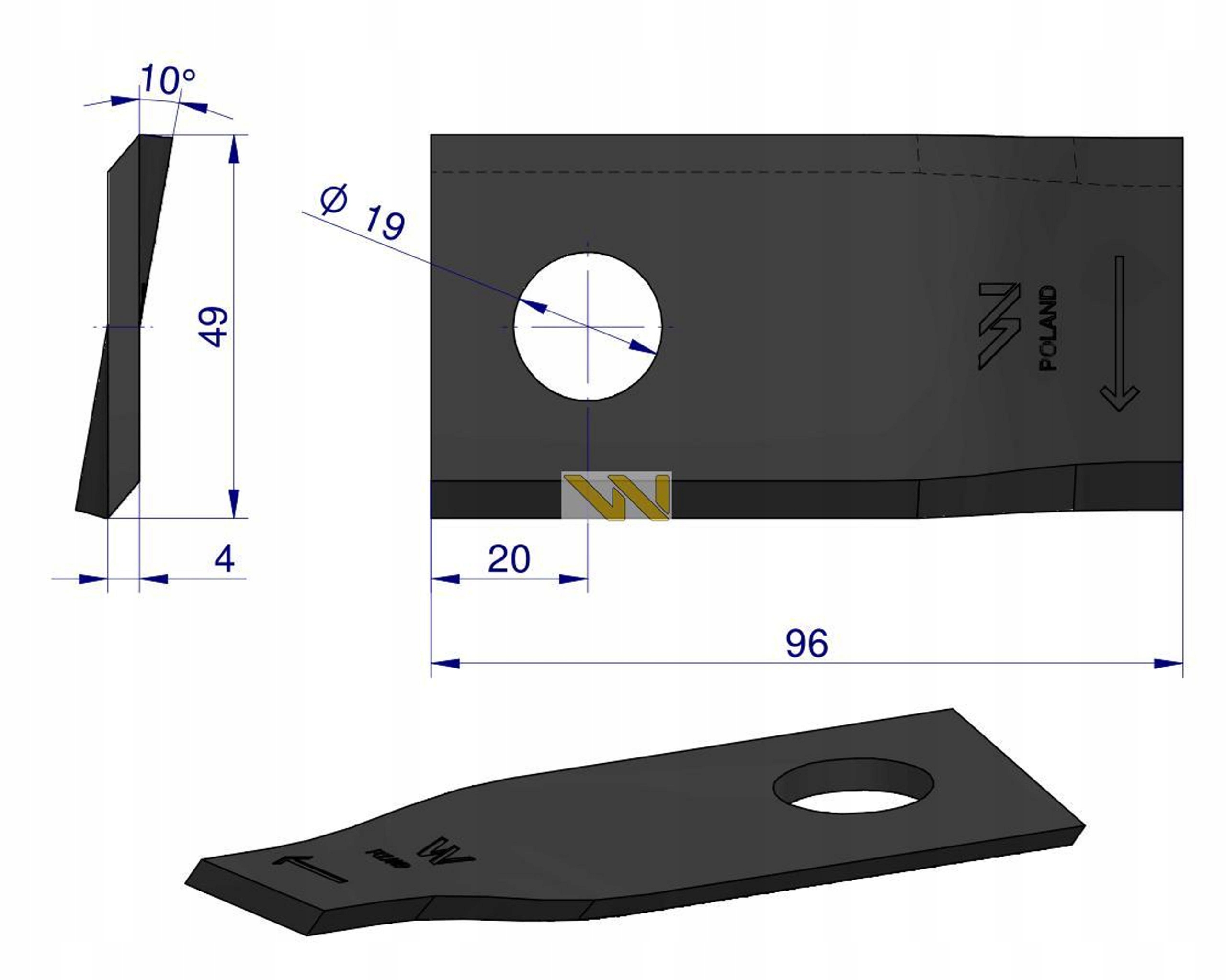 Strona główna » Części maszyn rolniczych » Kosiarka rotacyjna » Nożyki » Nóż nożyk kosiarka R 96x48x4 19 DeutzFahr WARYŃSKI