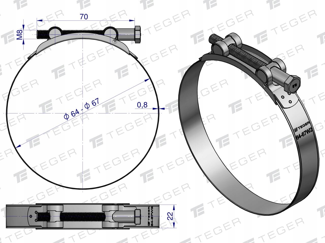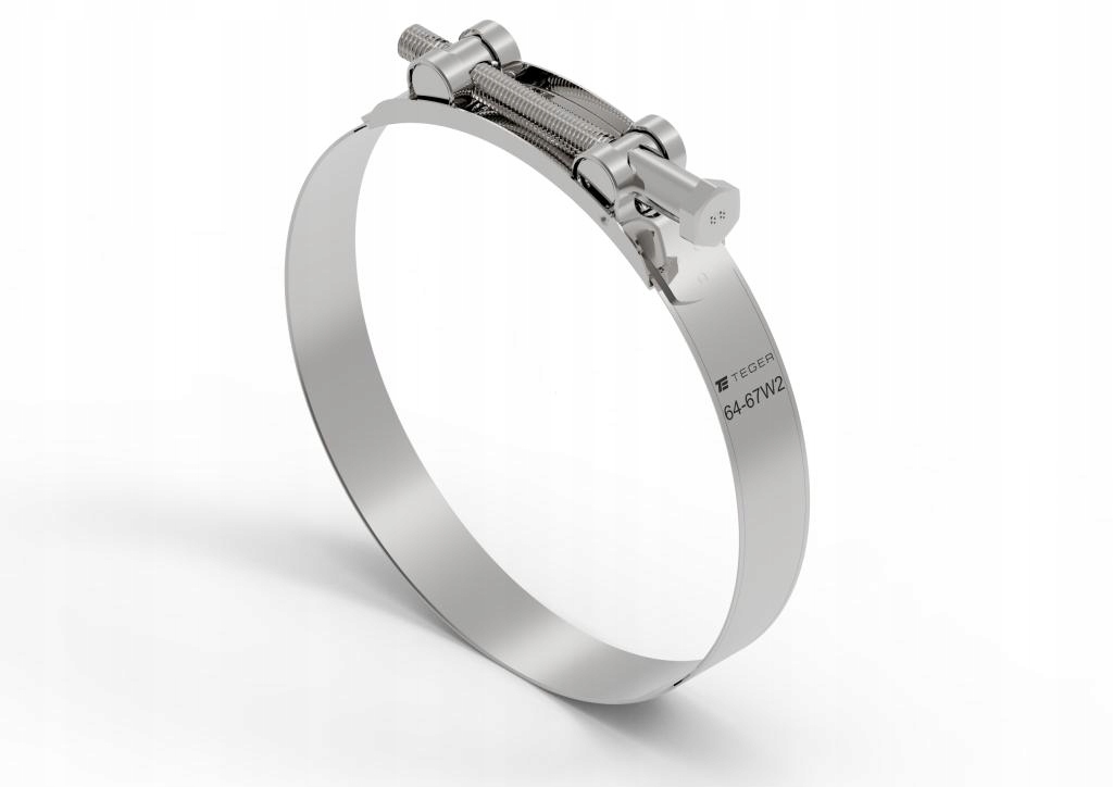 Opaska zaciskowa GBS 64-67 skręcana wzmacniana (obejma W2 - stal nierdzewna) szerkość 22mm TEGER. Skręcane śrubą z łbem sześciokątnym oraz dwoma sworzniami wewnętrznymi pełnymi. Dzięki czemu charakteryzują się zwiększoną siłą zacisku. Opaski zaciskowe GBS - łatwe w montażu: kluczyk, trwałe, duża siła zaciskająca.