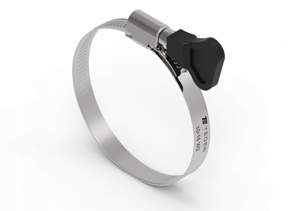 Opaska zaciskowa z pokrętłem 10-16 ślimakowa skręcana (obejma W2 - stal nierdzewna) szerokość 9mm TEGER.
