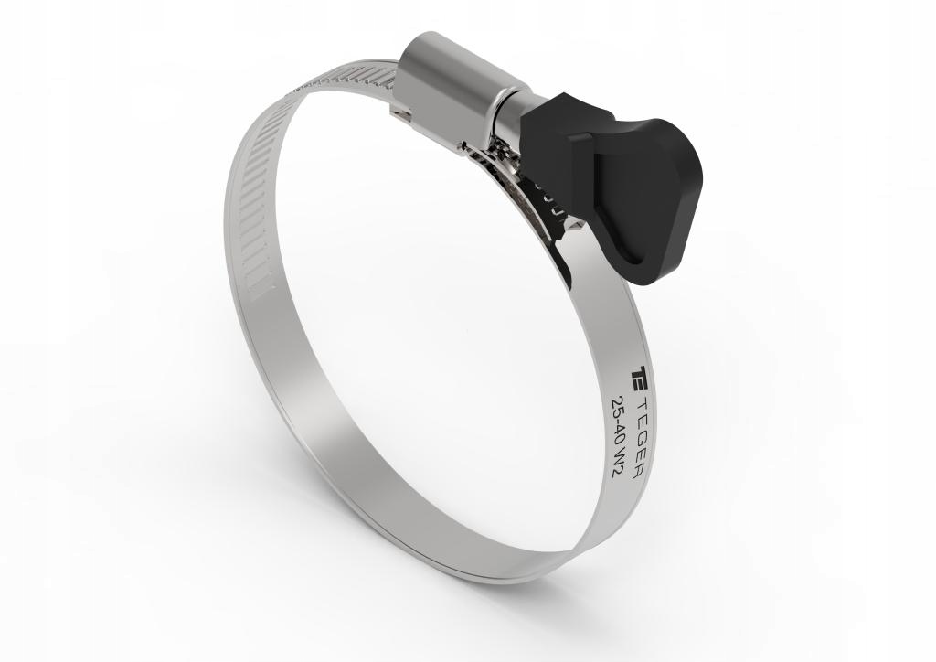 Opaska zaciskowa z pokrętłem 25-40 ślimakowa skręcana (obejma W2 - stal nierdzewna) szerokość 9mm TEGER.