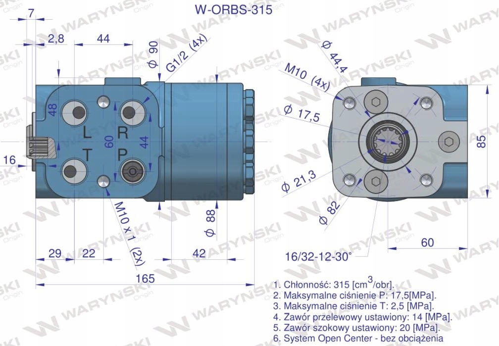 Orbitrol hydrauliczny W-ORBS 315 cm3/obr z zaworami (System Open Center - bez obciążenia) WARYŃSKI