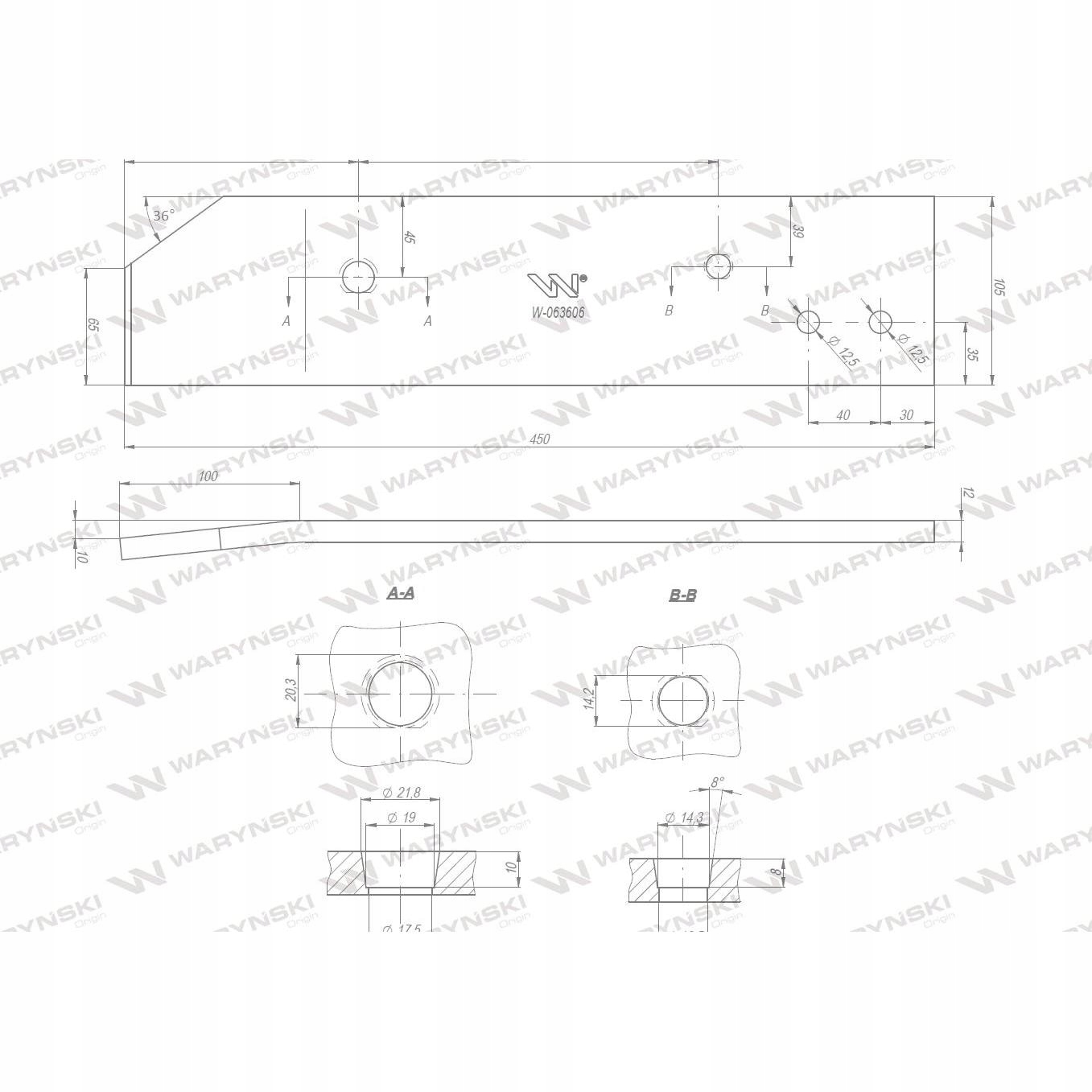 Płoza krótka lewa Kverneland stal borowa WARYŃSKI, W-063606