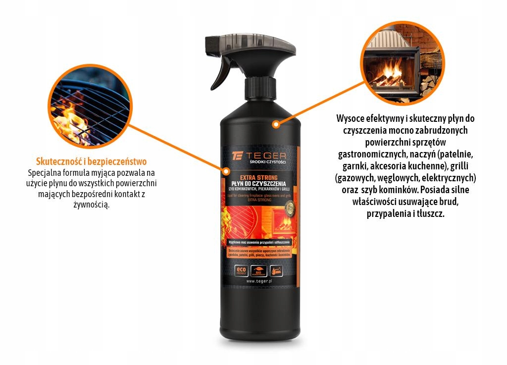 Płyn do czyszczenia szyb kominkowych piekarników i grilli EXTRA STRONG 1l - atomizer / TEGER