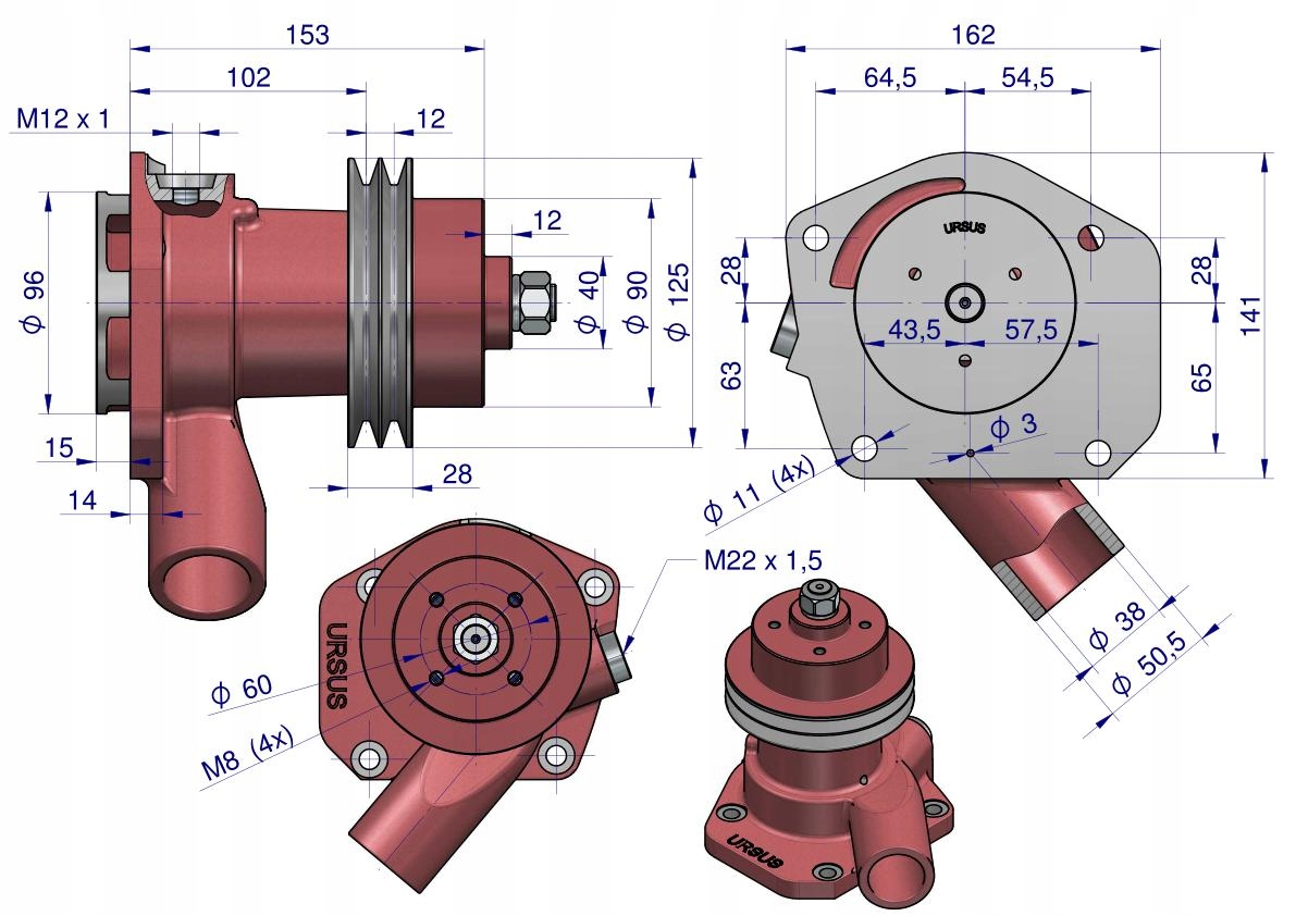Strona główna » Części do ciągników » Układ chłodzenia » Pompa wody Wysoka II paski URSUS C-385 ORYGINAŁ URSUS