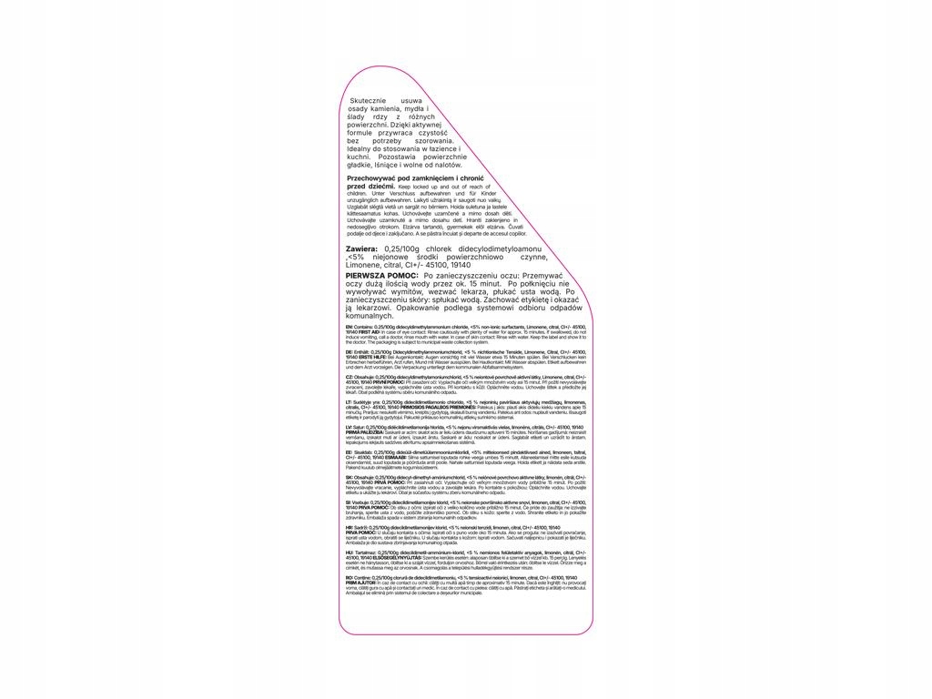 Sposób użycia: Nanieść preparat na czyszczoną powierzchnię. Odczekać chwilę. Następnie przetrzeć myte miejsce miękką gąbką i spłukać wodą. Dla lepszego efektu wytrzeć suchą szmatką.