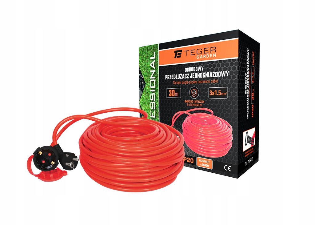 Przedłużacz ogrodowy PROFESSIONAL 3X1.5mm H05VV-F CE 30m TEGER