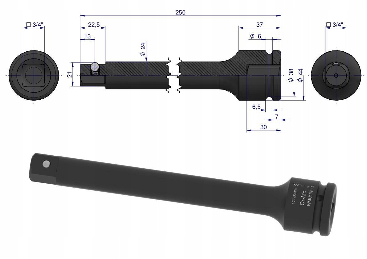 Przedłużka do nasadek udarowych 3/4 250mm WARYŃSKI, WMU109Przedłużka do nasadek udarowych 3/4 250mm WARYŃSKIPrzedłużka do nasadek udarowych 3/4 250mm WARYŃSKI