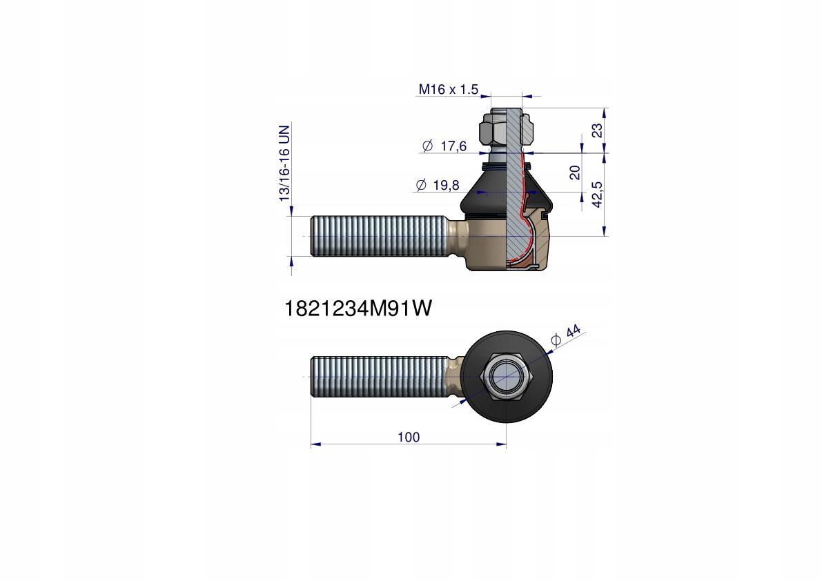 Przegub kierowniczy 100mm- 13/16-16 1821234M91 WARYŃSKI