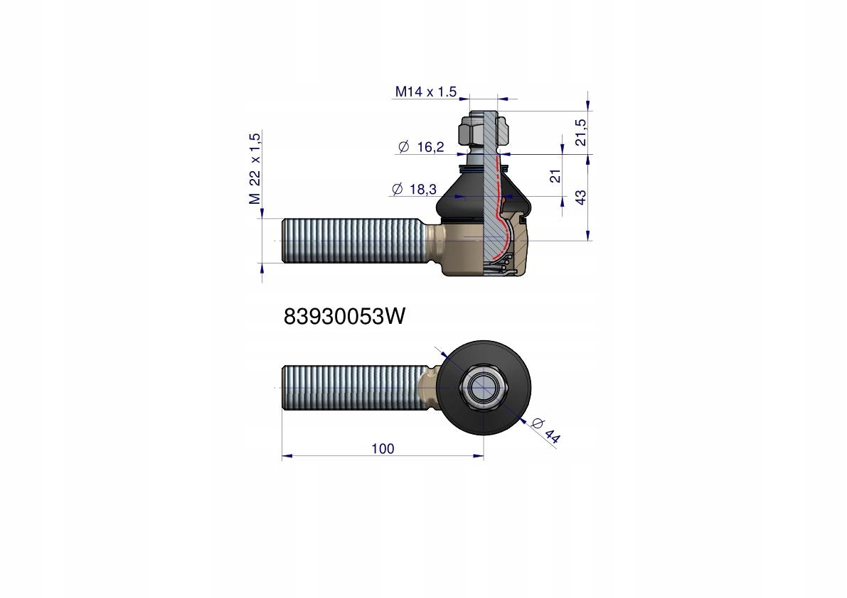 Przegub kierowniczy 100mm-M22x1,5 83930053 WARYŃSKI