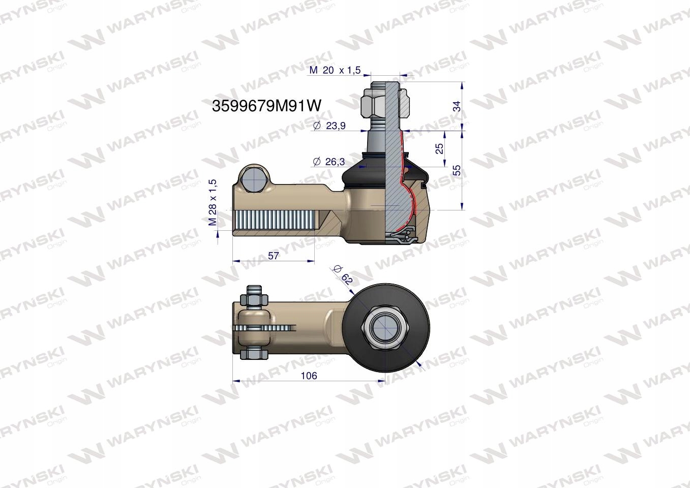 PRZEGUB KIEROWNICZY 106MM - M28X1,5 3599679M91 WARYŃSKI